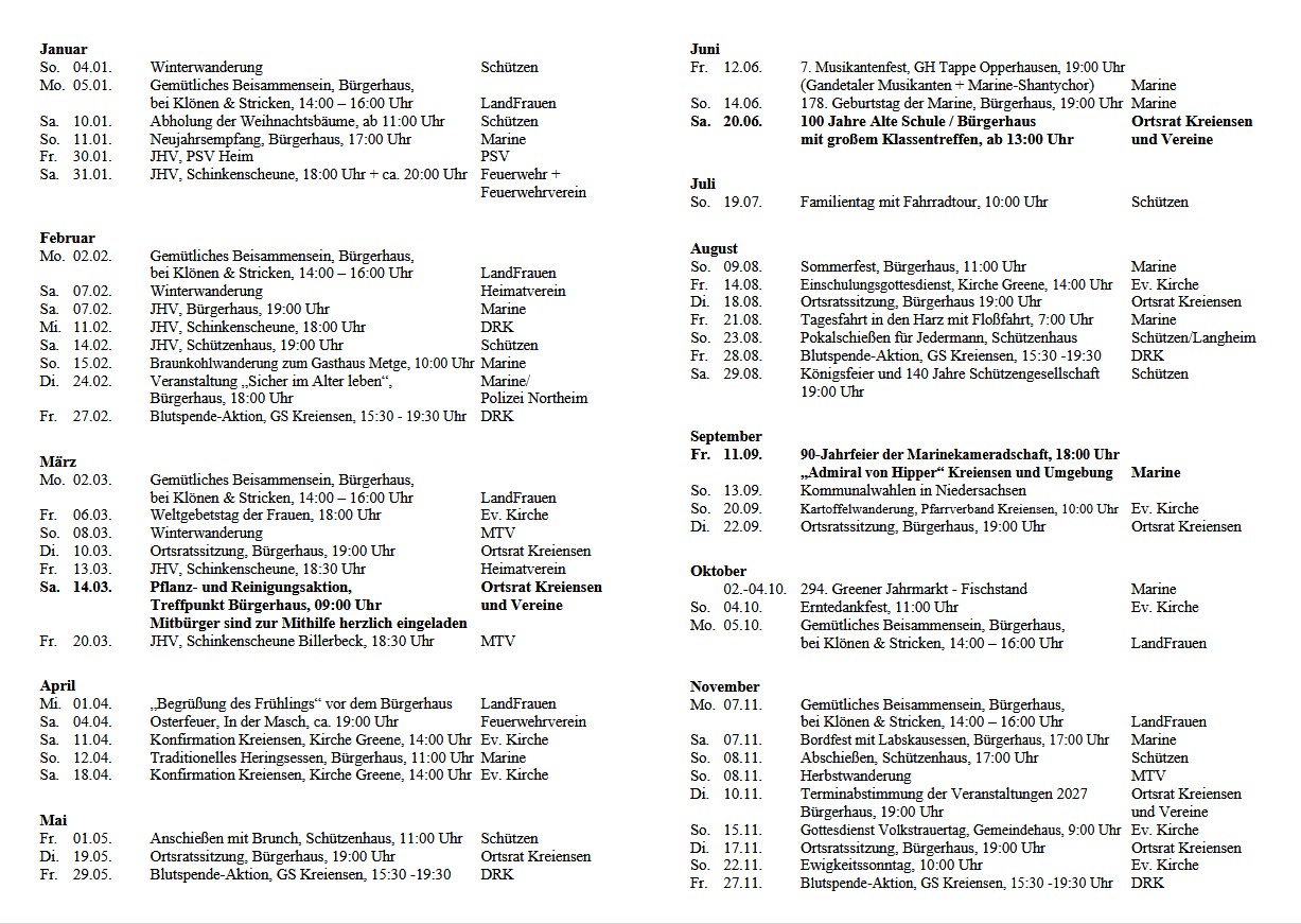 ******************** Veranstaltungskalender Kreiensen 2026 (Hier können Sie sich den Veranstaltungskalender Kreiensen als PDF herunterladen)
